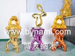 纳米喷涂是通过喷涂的工艺达到电镀的效果,应用化学反应的原理使被喷物体表面呈现镍色、金色、铜色、枪黑色(红黄紫绿蓝)等各种彩色镜面高光效果。无需做复杂的前期处理,不用做导电层。无任何三废排放和有害重金属处理等环保问题。可完全替代电镀、真空镀的一项新科技,且投资小,成本低。加工件不受任何体积大小和形状的限制。可以在金属、树脂、塑料、玻璃、陶瓷、亚克力、木材、塑木、磷镁、钙塑、水泥等各种材料上喷镀出镜面高光效果 。